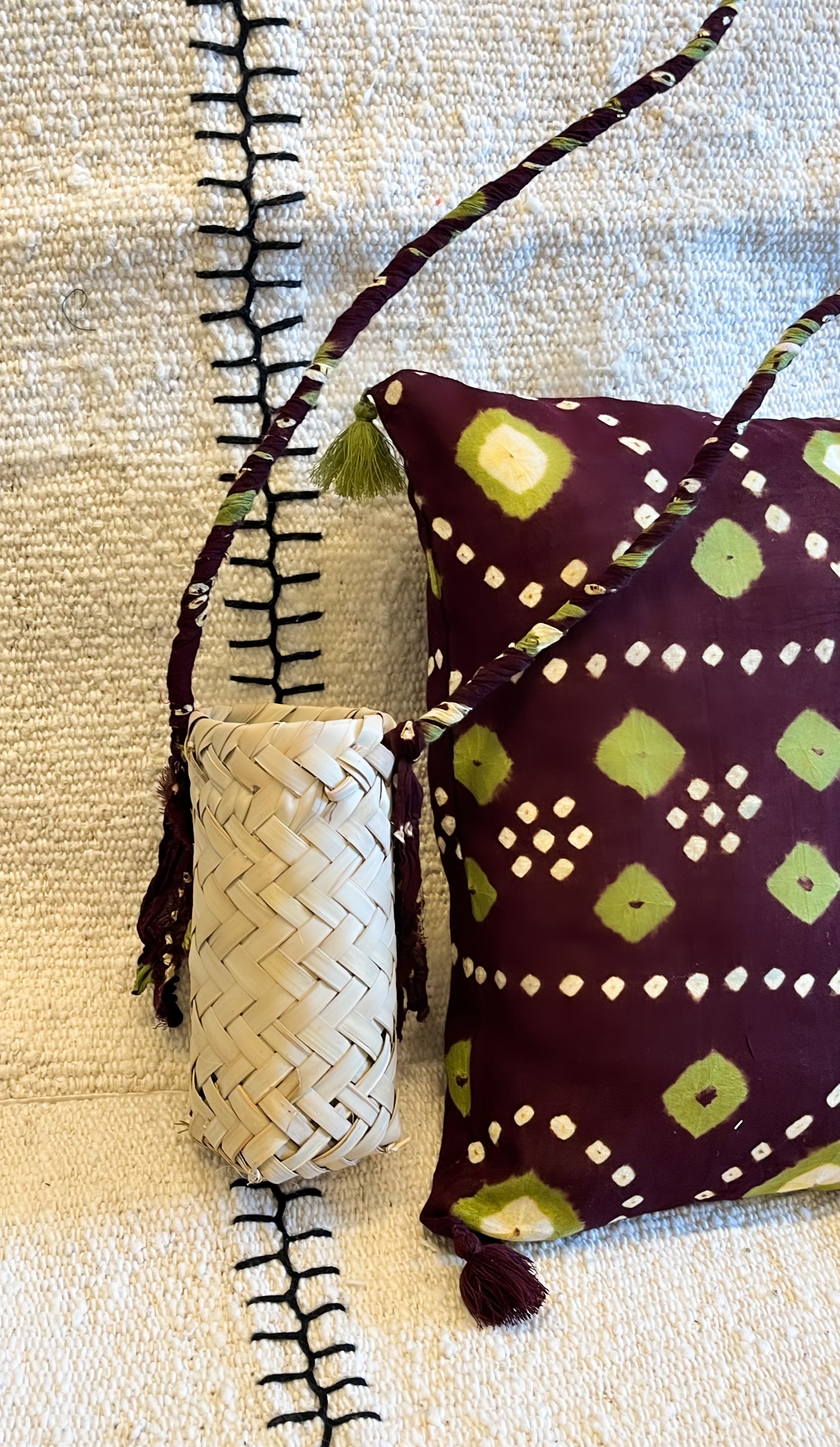 Beat the heat during summer with the dedicated bottle bag, perfect for the beach or the city. Features a handle wrapped in traditional Chunri fabric. Eco-friendly.