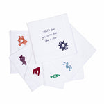 Celebrate the timeless wisdom of Rumi with this set of six linen napkins, each hand-embroidered with a different quote from the beloved Sufi poet. Paired with complementary Central Asian motifs, the words are brought to life through intricate stitches that capture both beauty and meaning.